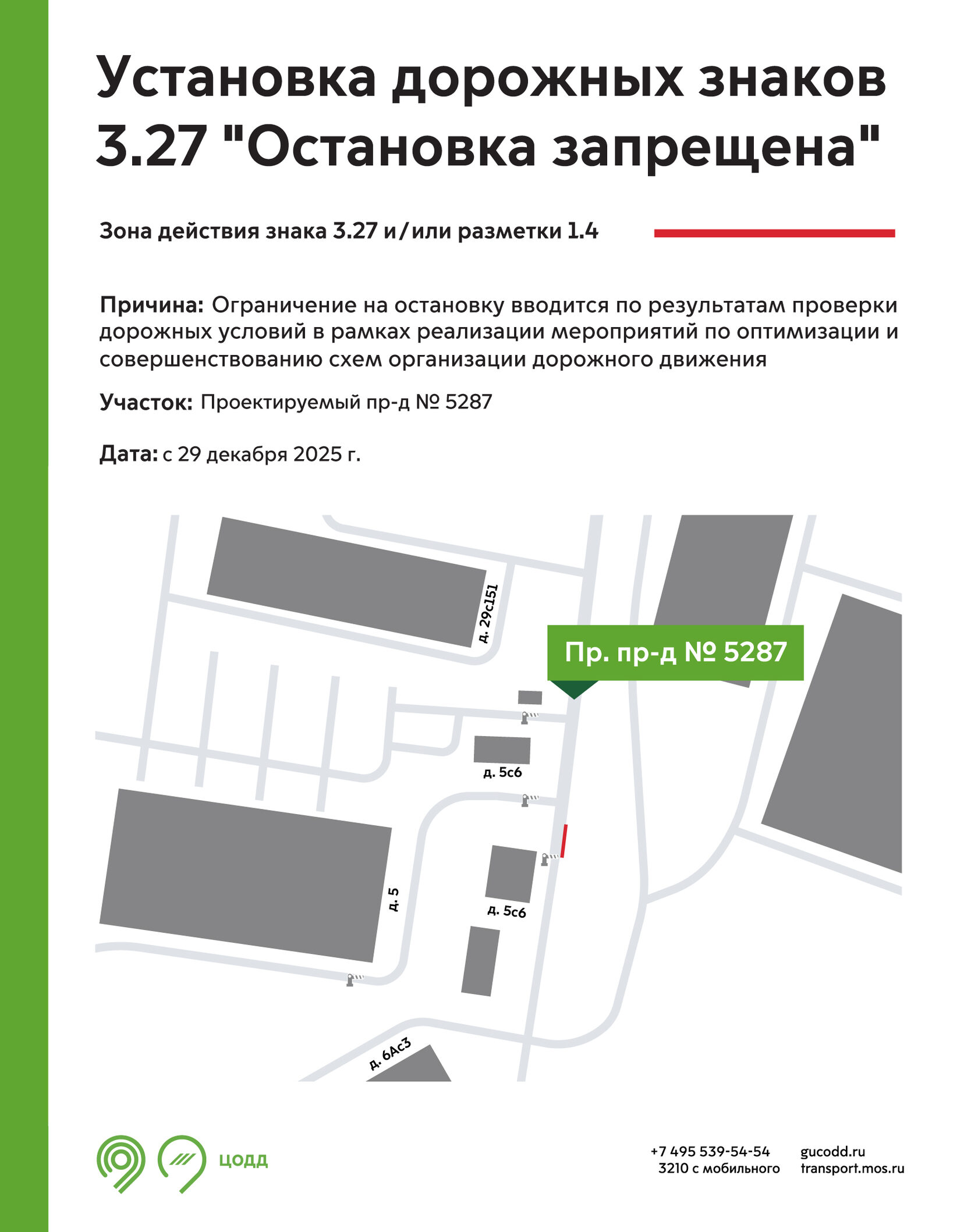 С 29 декабря 2025 года в Проектируемом проезде № 5287 Западного округа начнет действие знак 3.27 «Остановка запрещена».