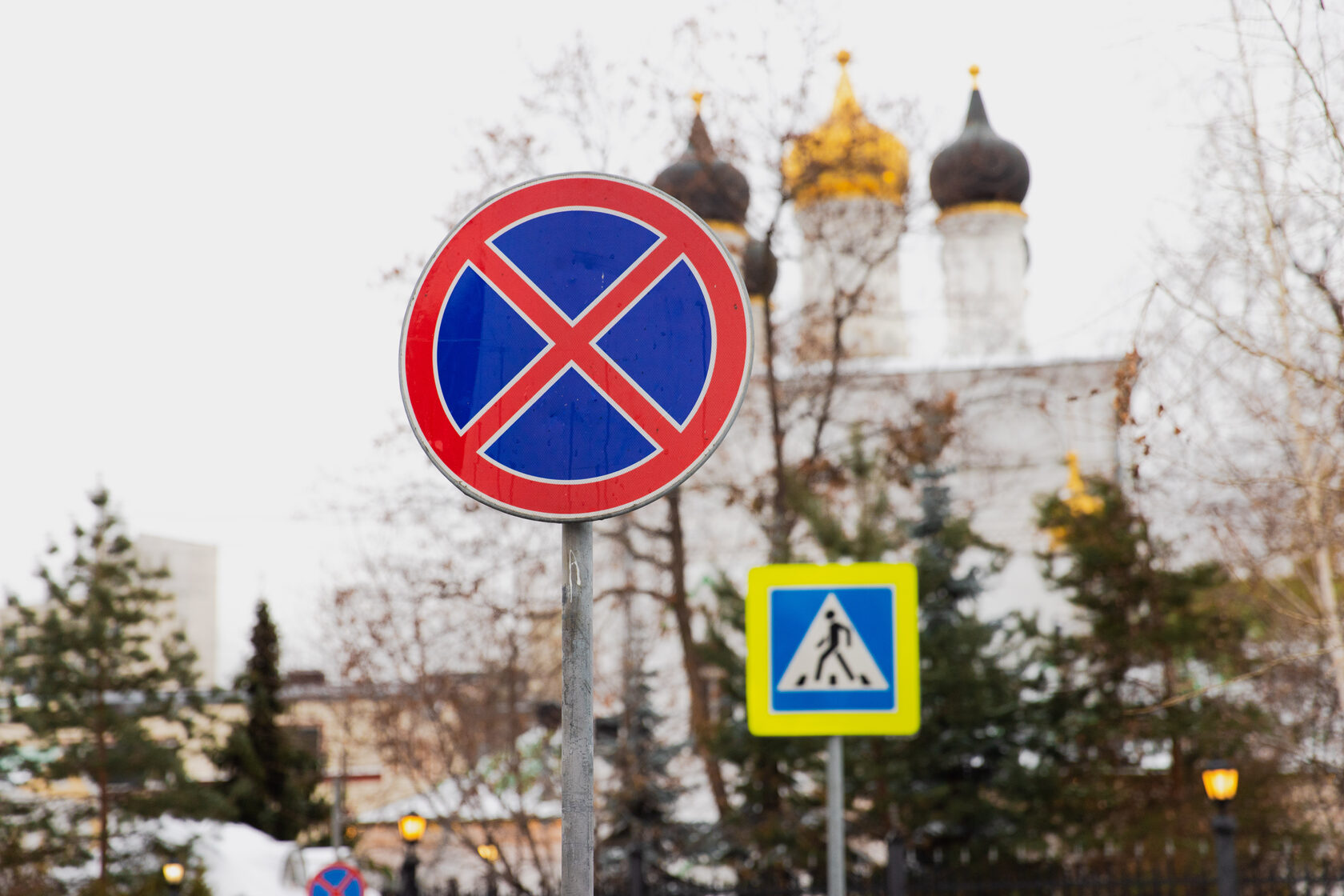 Установка дорожных знаков «Остановка запрещена» в ТиНАО.